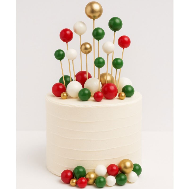 Dale a tus tartas y postres el toque más festivo con el Set de 32 bolas decorativas de Navidad de Azúcren. Ideal para repostería creativa, mesas dulces y decoraciones navideñas, este conjunto combina los colores clásicos de la temporada: rojo, verde, blanco y dorado.
