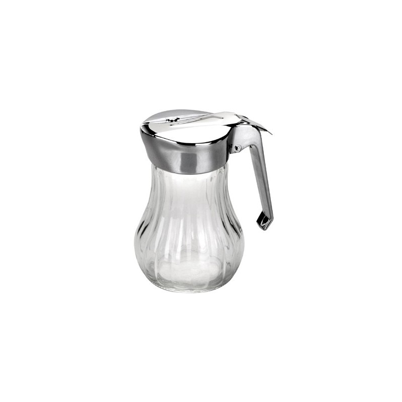 Prática jarra dosificadora de mel ou outros líquidos com botão deslizante que abre e fecha o fluxo do líquido.