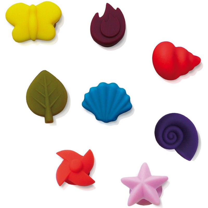 Este conjunto de 8 marcadores para copas de Vin Bouquet oferece uma solução divertida e eficaz para distinguir as copas e vasos em reuniões e festas.