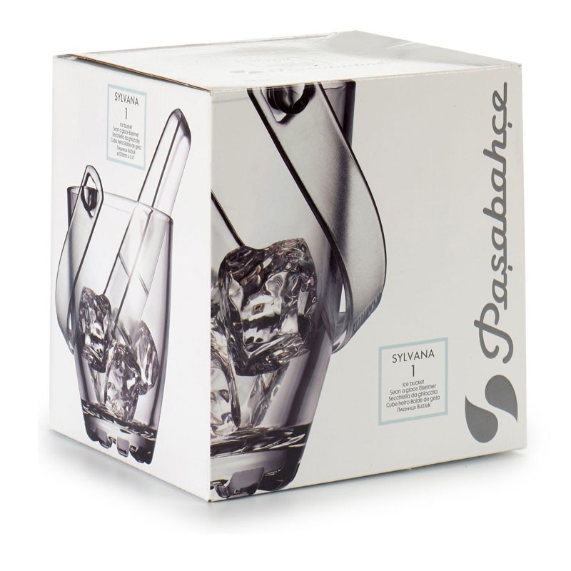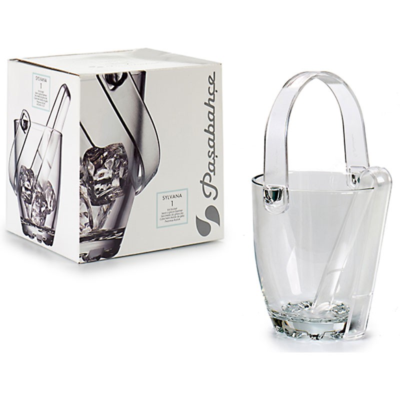 Cubo de gelo fabricado em vidro + pinças e alça de plástico para pegar os cubinhos de gelo modelo Sylvana de Pasabahce