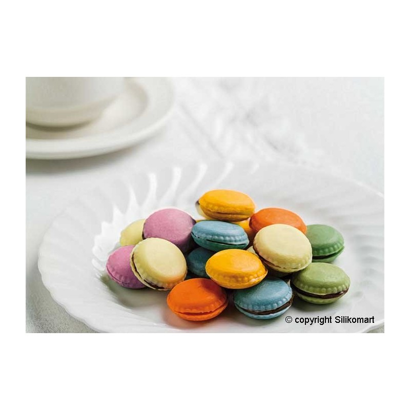 Molde fabricado em silicone Platinum 100% para fazer bombons com formato de macarons.