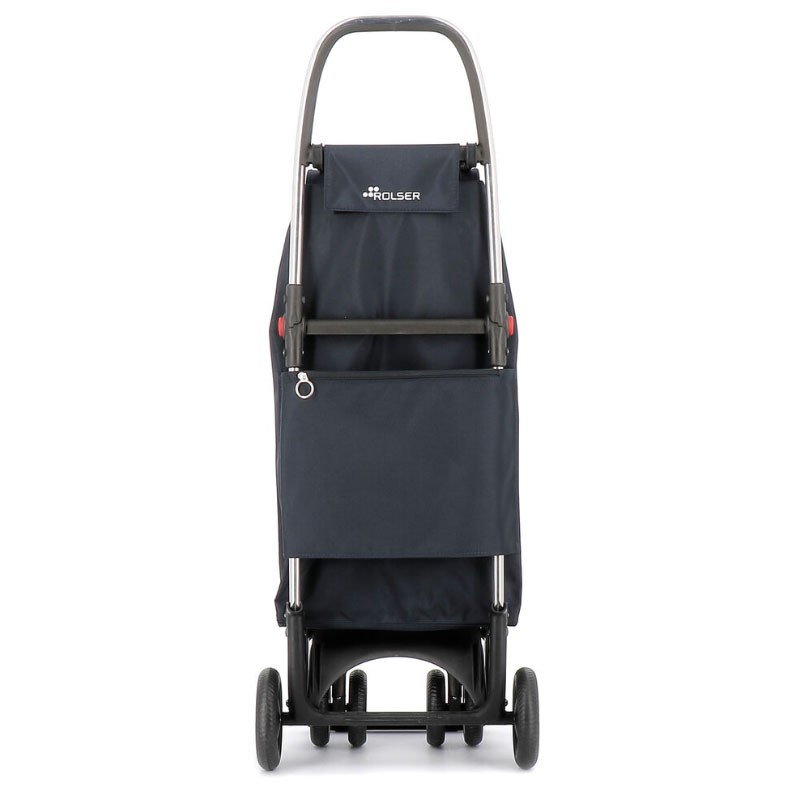 Carrinho Rolser dobrável de alumínio de 2/4 rodas, para evitar cargas desnecessárias. Em posição de duas rodas para levar atrás quando está vazio, e empurrando à frente quando está cheio com 4 rodas. 4LT é um dos muitos avanços tecnológicos da Rolser.