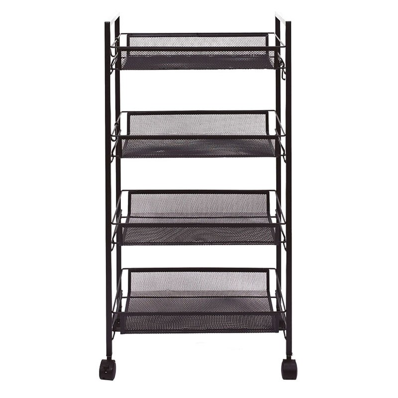 Este carrinho auxiliar é feito de metal pintado na cor preta. Tem um design moderno que se encaixará perfeitamente com sua decoração e é muito prático, pois pode ser usado para uma infinidade de produtos em sua casa.