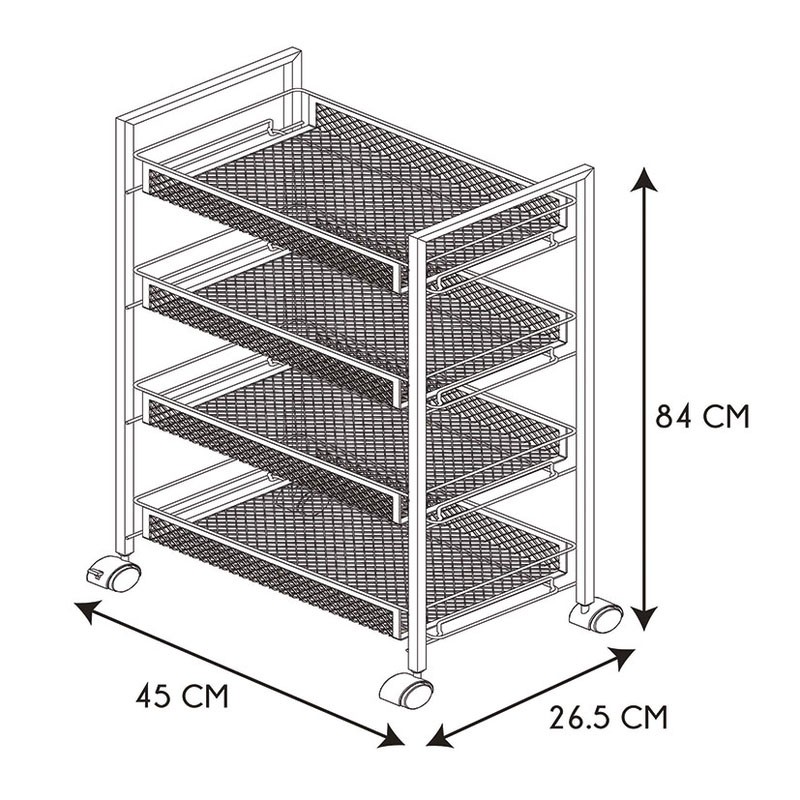 Carrinho auxiliar metálico 4 alturas de 45 x 2 6,5 x h.84 cm com rodas.