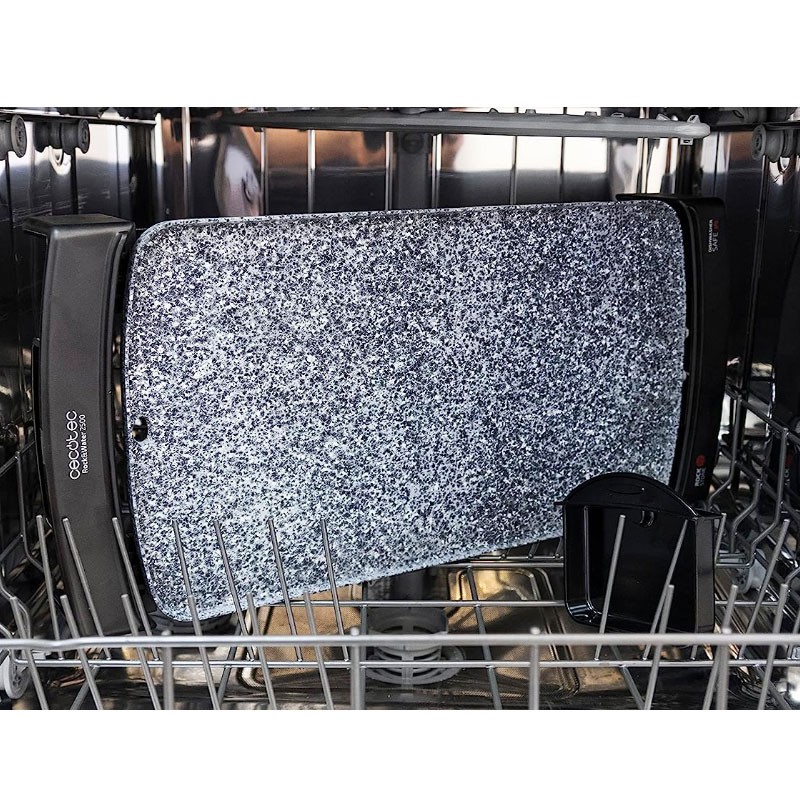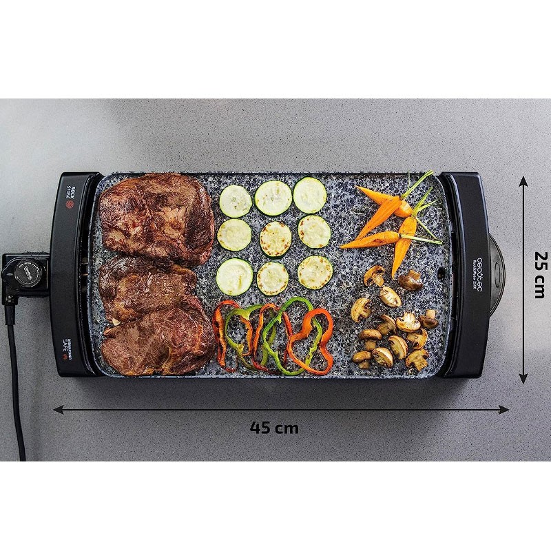Chapa de assar elétrica de grande potência com revestimento de pedra RockStone, termostato regulável e apta para lava-louças. 45x25 cm. Rock&Water 2500.