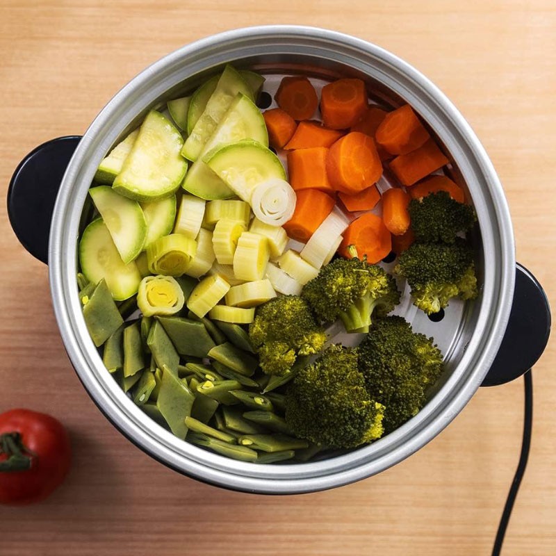 - Cocción saludable al vapor: Incluye una bandeja de vapor para cocinar verduras, carne o huevos de manera saludable, preservando todo su sabor y nutrientes.