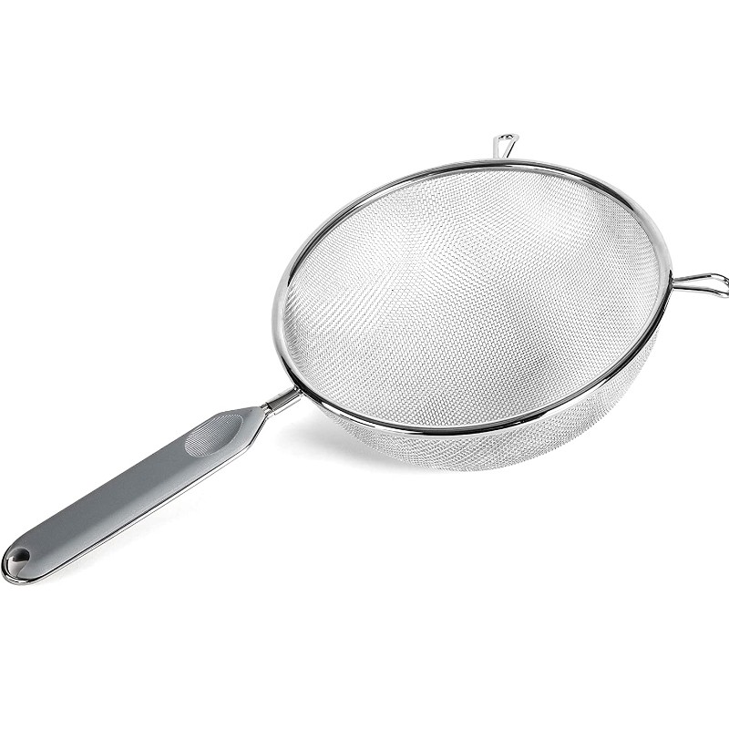 Esse coador conta com duas abas na parte superior do aro, o que facilita apoiá-lo sobre uma tigela ou uma panela durante seu uso. A malha do coador é fabricada em aço inoxidável, garantindo durabilidade e resistência.