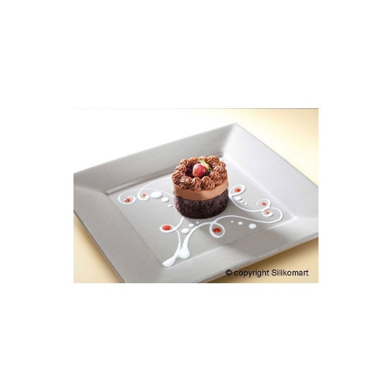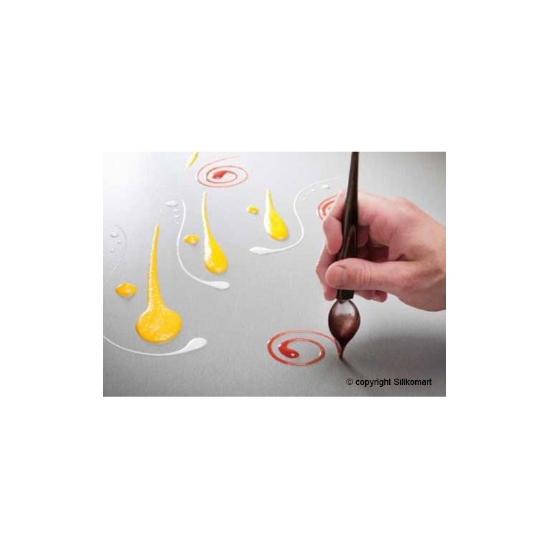 - Modo de emprego: Em um pequeno recipiente, pegar com Spoon Decor uma pequena quantidade de molho e colocar a ponta da colher verticalmente em relação ao seu prato, fazendo escorregar a ponta sobre a porcelana. Você poderá obter traços grossos e delineados. Você poderá sobrepor os traços de cor ou combinar os traços em pontos.