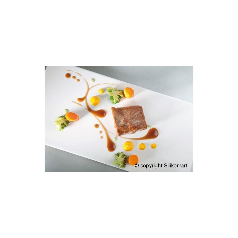 Ideal para realizar uma decoração ou uma assinatura com: molho salgado, molho de tomate, vinagre balsâmico, emulsão de vegetais ou peixe, purê estendido, suco de carne, molho holandês, coulis de fruta, molho de chocolate, caramelo, creme inglês...