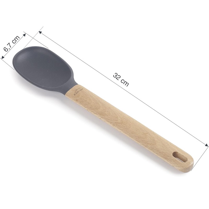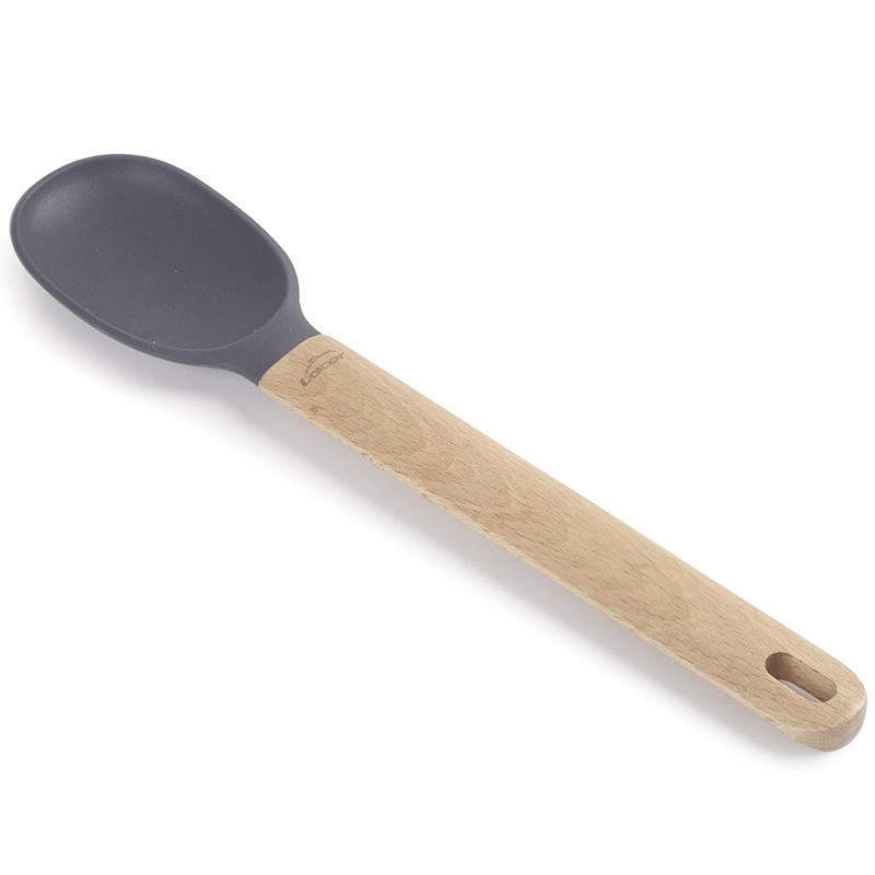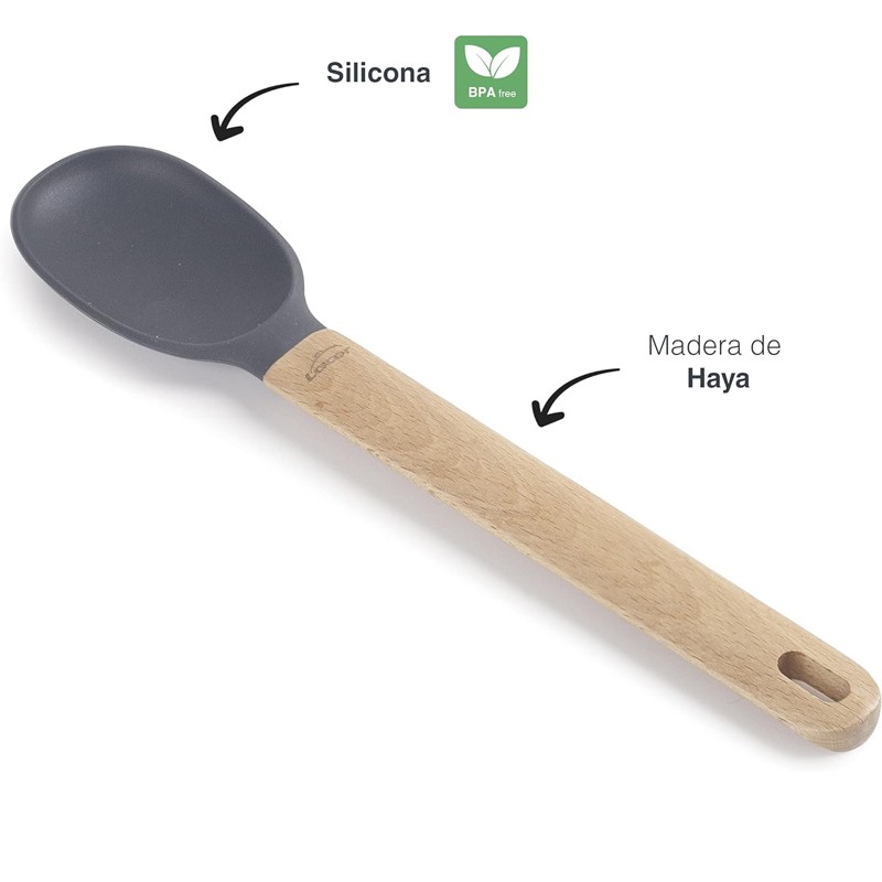 Prática colher para cozinhar fabricada em silicone de primeira qualidade e cabo em madeira de faia.
