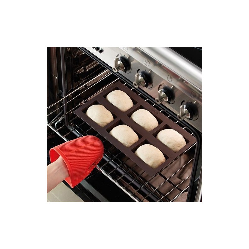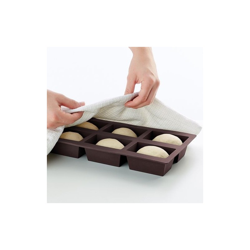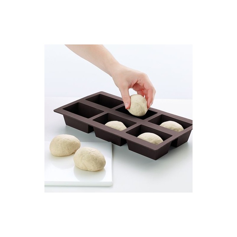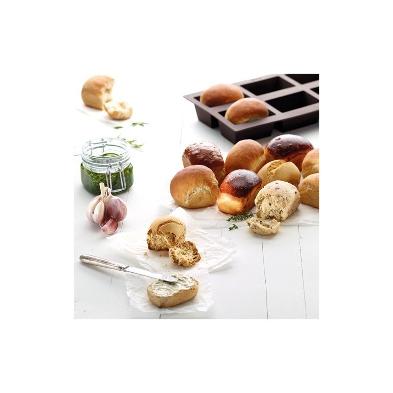 Esta forma é feita de silicone platino, o que facilita a desenformagem. Basta inserir a massa para que os pães assumam a forma ideal para um aperitivo surpreendente.