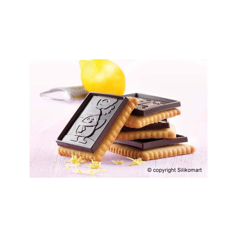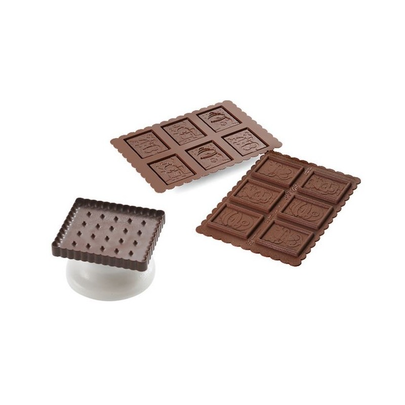 - 1 molde de silicone para as plaquinhas de chocolate com 3 tipos de decoração diferentes.