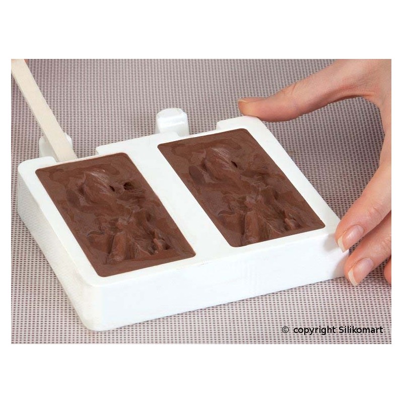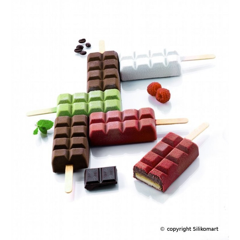 Conjunto de 2 moldes para fazer sorvetes com forma de tablete de chocolate, fabricados em silicone Platinum.