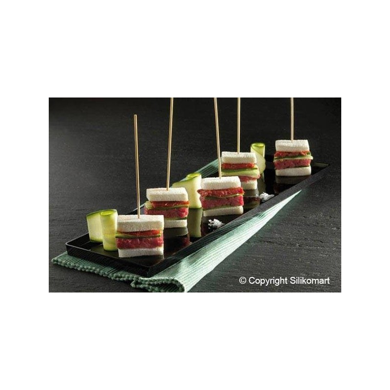 Molde fabricado em silicone Platinum 100% com 20 cavidades em forma retangular. Este molde é apto para forno, micro-ondas e lava-louças. É flexível, antiaderente e muito fácil de desmoldar, o que o torna ideal para receitas tanto doces quanto salgadas.