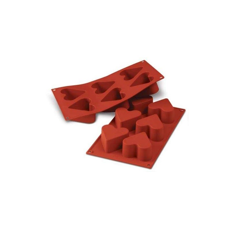 Molde fabricado em silicone Platinum 100% com 6 cavidades em forma de coração. Apto para forno, micro-ondas e lava-louças. Flexível, antiaderente e muito fácil de desmoldar. Ideal para receitas tanto doces quanto salgadas.