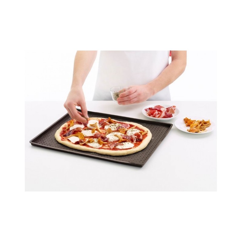 O Pizza Mat de Lekue ajuda você a obter o acabamento crocante que sempre desejou para suas pizzas caseiras. Seu microperfurado assegura um cozimento uniforme, evitando que a massa amoleça e criando uma crosta crocante em toda a pizza.