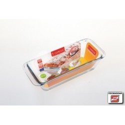 Molde de bolo retangular da marca Technogar feito de vidro borosilicato. Este molde é resistente tanto a altas como baixas temperaturas, suportando temperaturas de +500 ºC até -40ºC. Além disso, é apto para micro-ondas, máquina de lavar louça e frigorífico. Fabricado na Comunidade Econômica Europeia (CEE) e livre de cádmio e chumbo em sua composição.