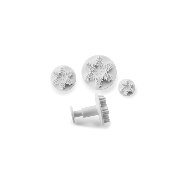 Set de 3 cortadores com expulsor em forma de copo de neve.