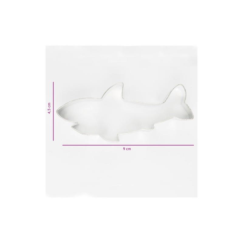 Cortador de biscoitos em forma de tubarão 9 cms. Divertido cortador de aço inoxidável com forma de tubarão. O cortador é perfeito para usar também com fondant e marzipã.
