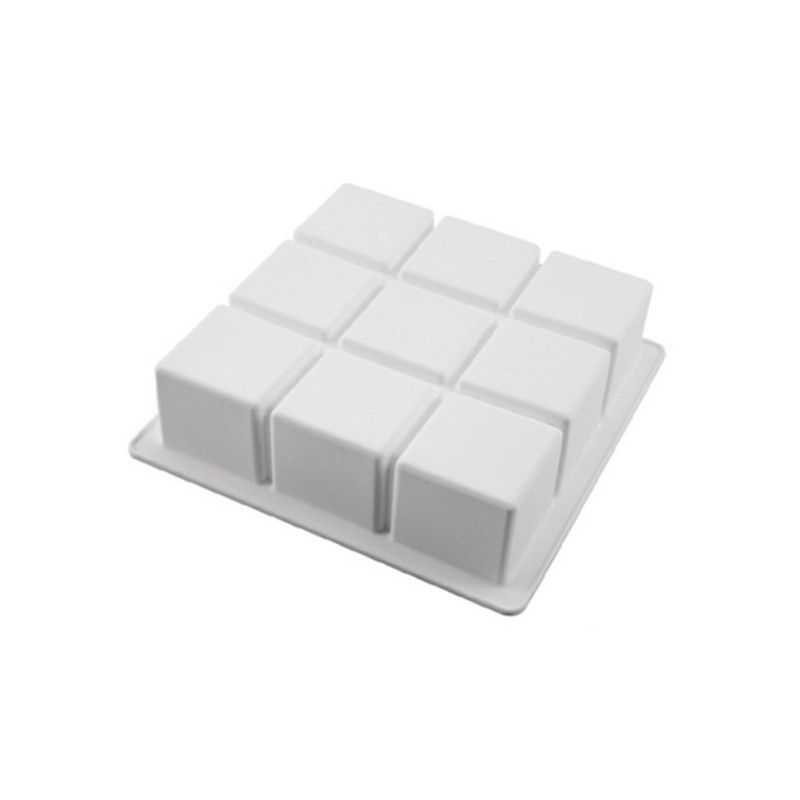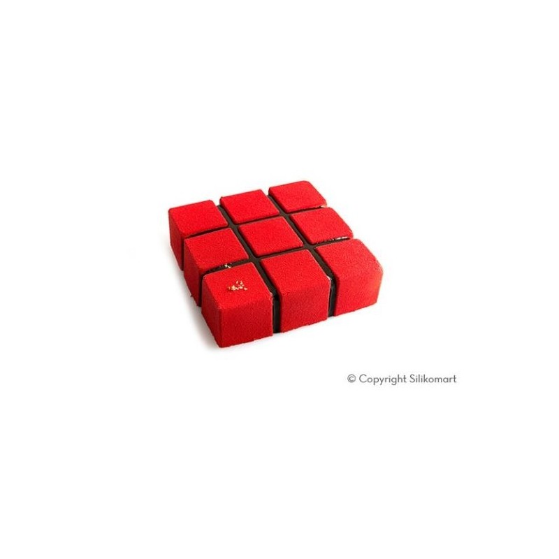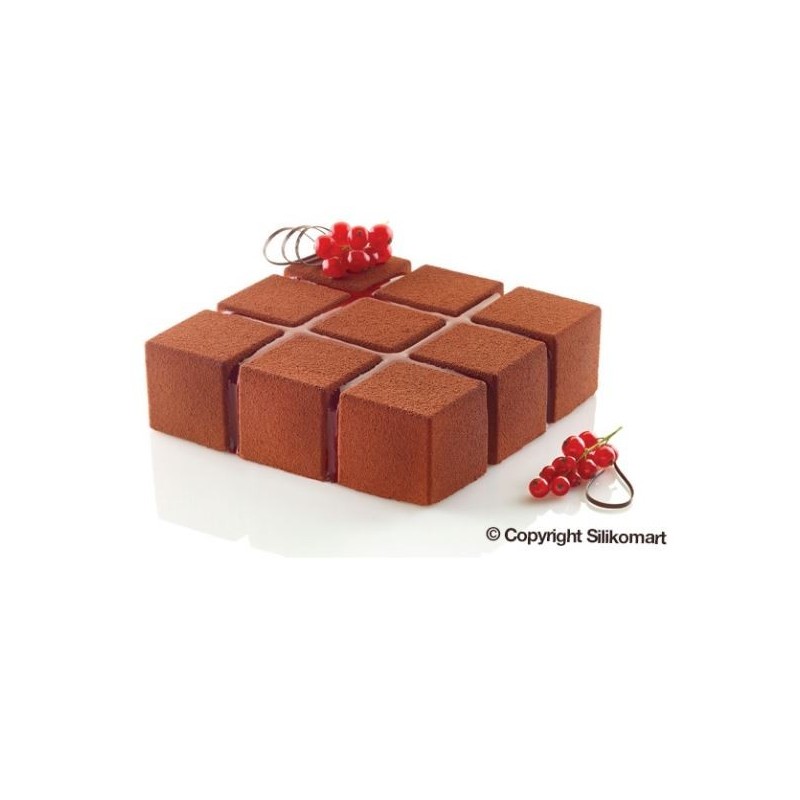 Molde de silicone Cubik da Silikomart 172x172 mm. Apesar de sua simplicidade geométrica, Cubik da Silikomart Professional é um produto de grande impacto emocional e extremamente versátil. Com uma capacidade de 1400 ml, adapta-se a múltiplas preparações. Um molde curioso e elegante ao mesmo tempo, graças ao seu design minimal.