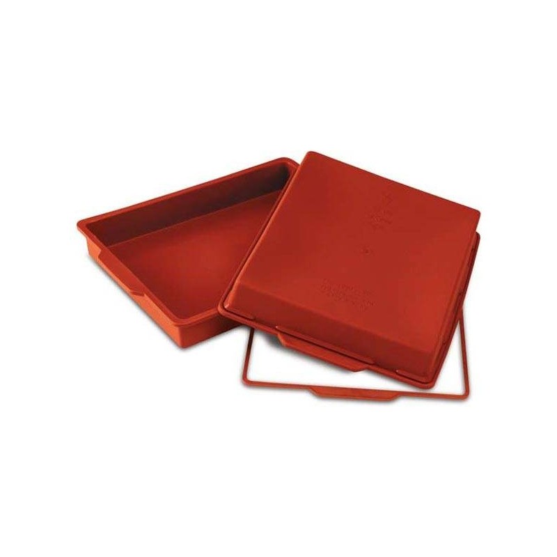 Molde de silicone retangular perfeito para bolos ou lasanha da Silikomart. Inclui moldura retangular para evitar derramamentos. Adequado para máquina de lavar louça, congelador, forno, microondas e frigorífico. Para o cozimento, recomenda-se introduzir completamente o SAFE RING no molde, assegurando-se de que esteja bem seco no caso de utilização no microondas. Não coloque o molde em contato com fontes diretas de calor (placas elétricas, chamas livres, grelhas, vitrocerâmicas...). Não utilize facas ou objetos pontiagudos diretamente no molde.