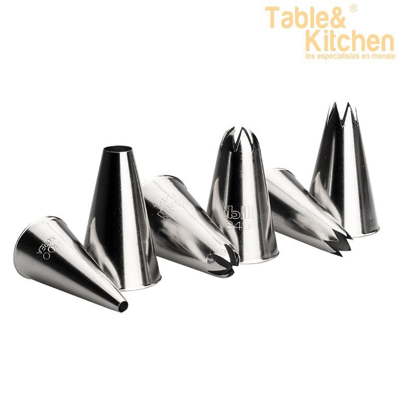 Set de 6 bicos para decoração fabricados em aço niquelado.