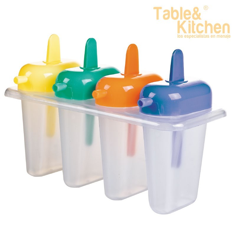 Pacote de 4 moldes para sorvetes fabricados em plástico da Ibili. Com esses moldes, você pode fazer uma infinidade de sorvetes utilizando frutas, creme, nata, iogurte e outros ingredientes. Receita incluída.