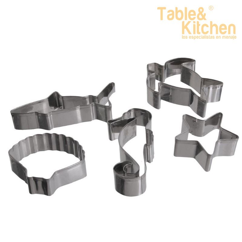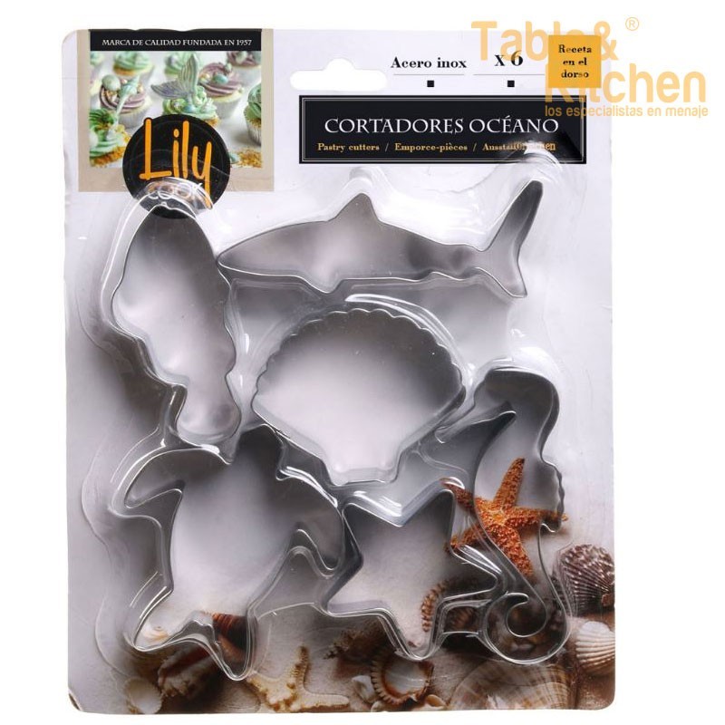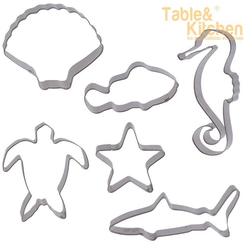 Jogo de 6 cortadores com formas marinhas, ideal para realizar pequenas preparações de confeitaria