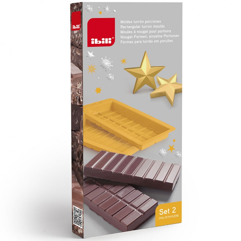 Set de 2 moldes para fazer seu próprio turrón caseiro com designs de porções retangulares.
