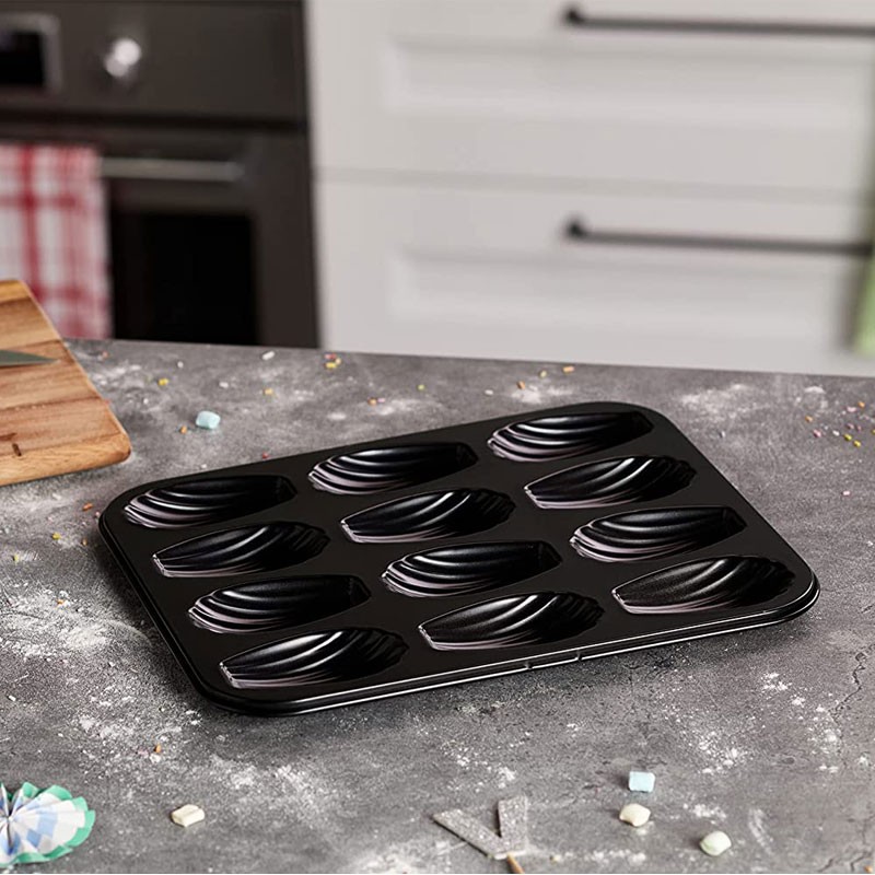 Forma antiaderente de 12 cavidades para fazer bolinhos em forma de concha no forno.