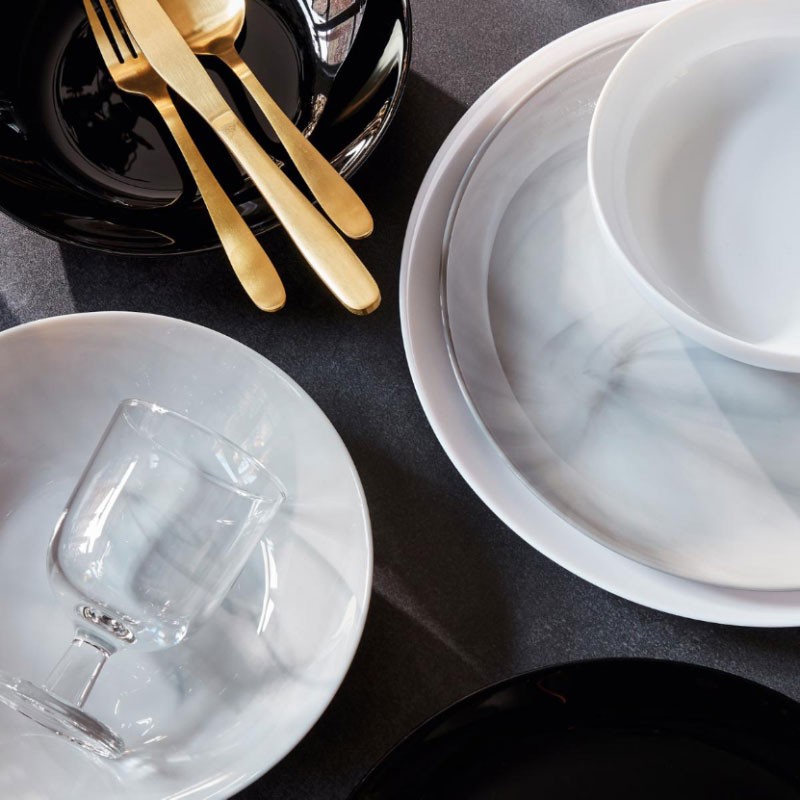 O conjunto Diwali Granit Marbre da Luminarc une design moderno e resistência extrema em 18 peças perfeitas para o uso diário.