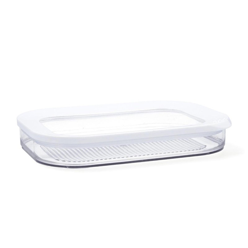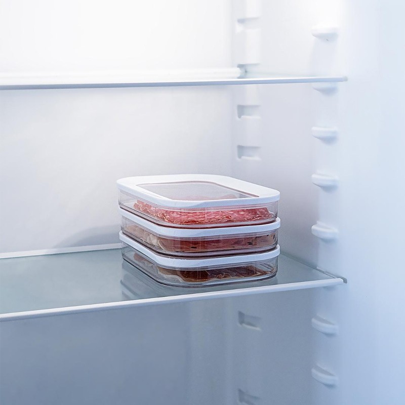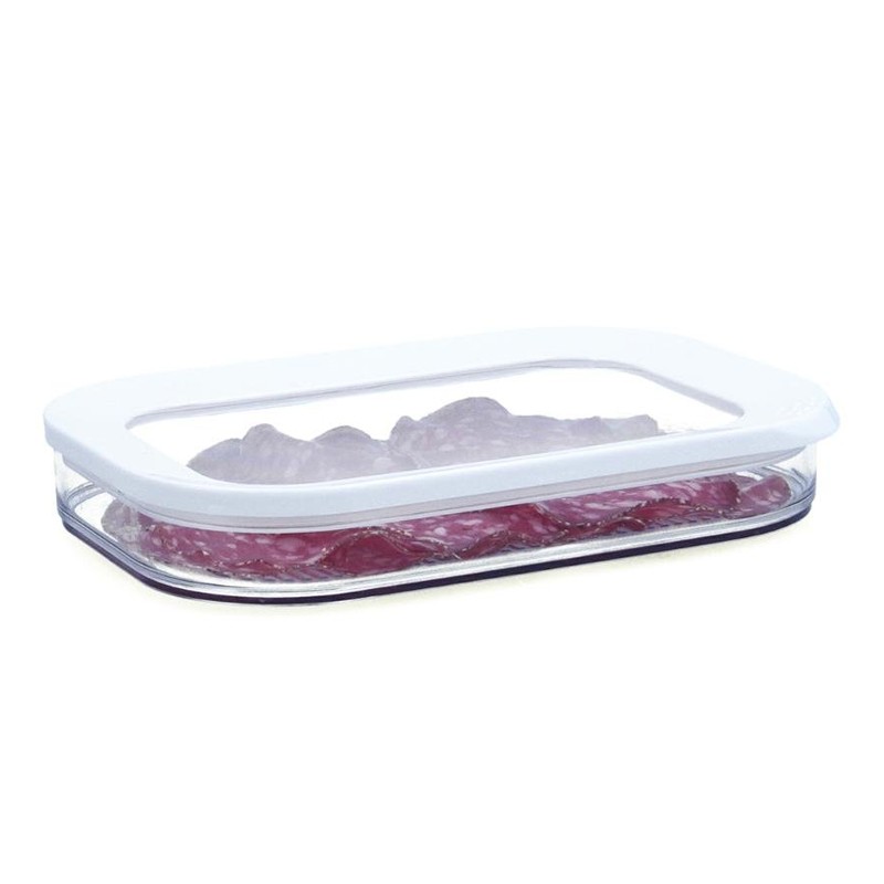 É um prático recipiente para conservar mais e melhor o embutido ao corte.