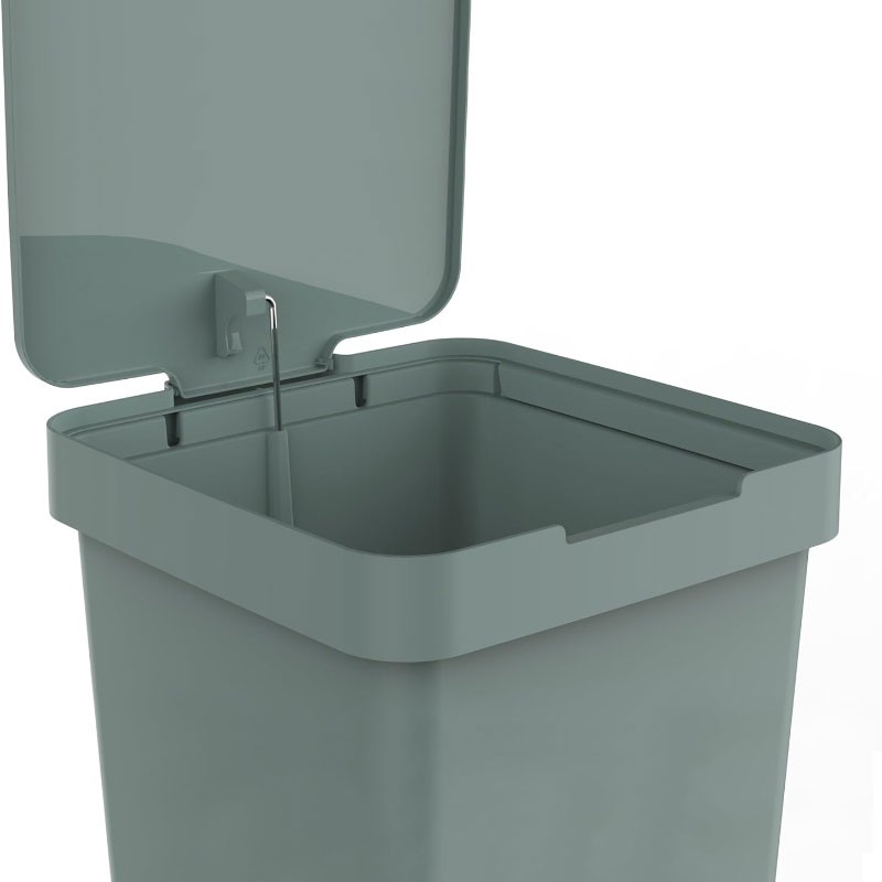 - Fixação segura do saco de lixo: Inclui aro para segurar sacos, entalhes no corpo e uma dobradiça metálica oculta para facilitar a colocação e estabilidade dos sacos.