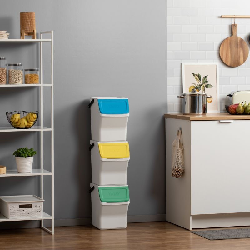Conjunto de 3 ecopontos com tampas coloridas para os diferenciar, da marca Tatay.