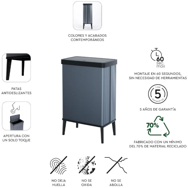 É um cubo levantado por pernas com muito desenho que decora qualquer cozinha. É um contentor de lixo de nova geração da Curver, que reúne todas as vantagens de um contentor decorado, ao mesmo tempo que é leve e fácil de transportar.