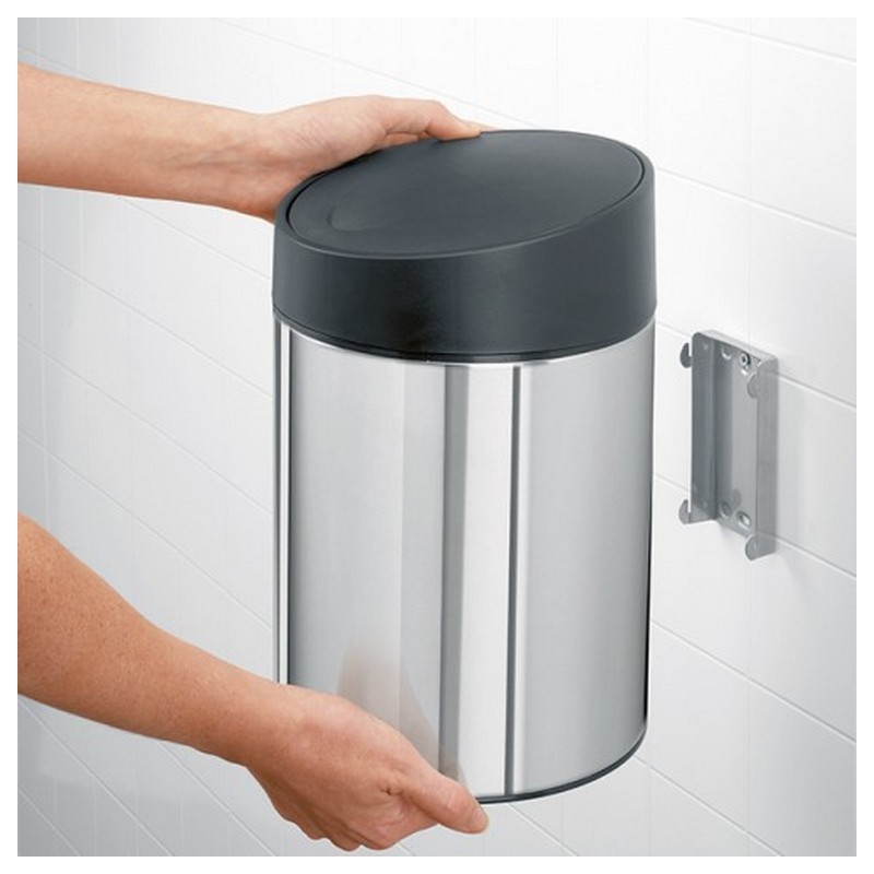 Lixeira com tampa oscilante Brabantia, projetada para ser montada na parede ou colocada no chão.