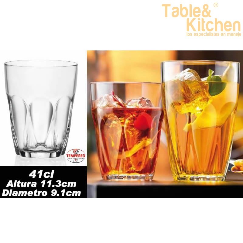 Caixa com 4 copos modelo Perugia, fabricados em vidro temperado. Apto para micro-ondas e lava-louças.