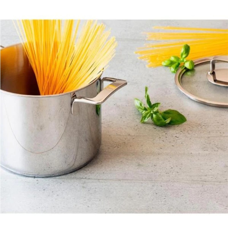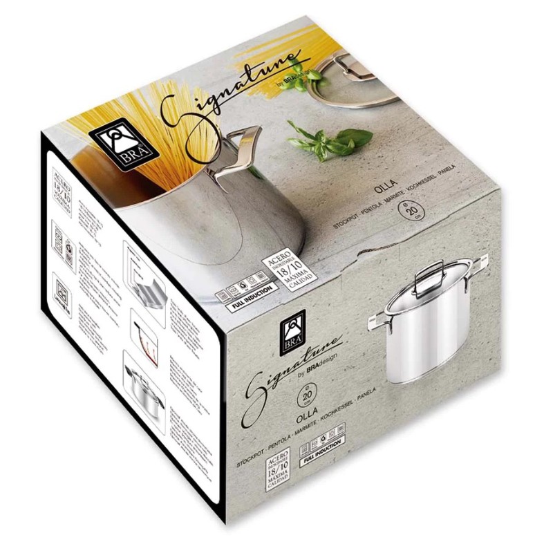 A panela de aço inoxidável Signature da Bra é apta para todas as fontes de calor, incluindo a indução, graças ao seu fundo difusor triplo full induction. Além disso, oferece uma excelente distribuição da temperatura para um cozimento perfeito de todas suas receitas.