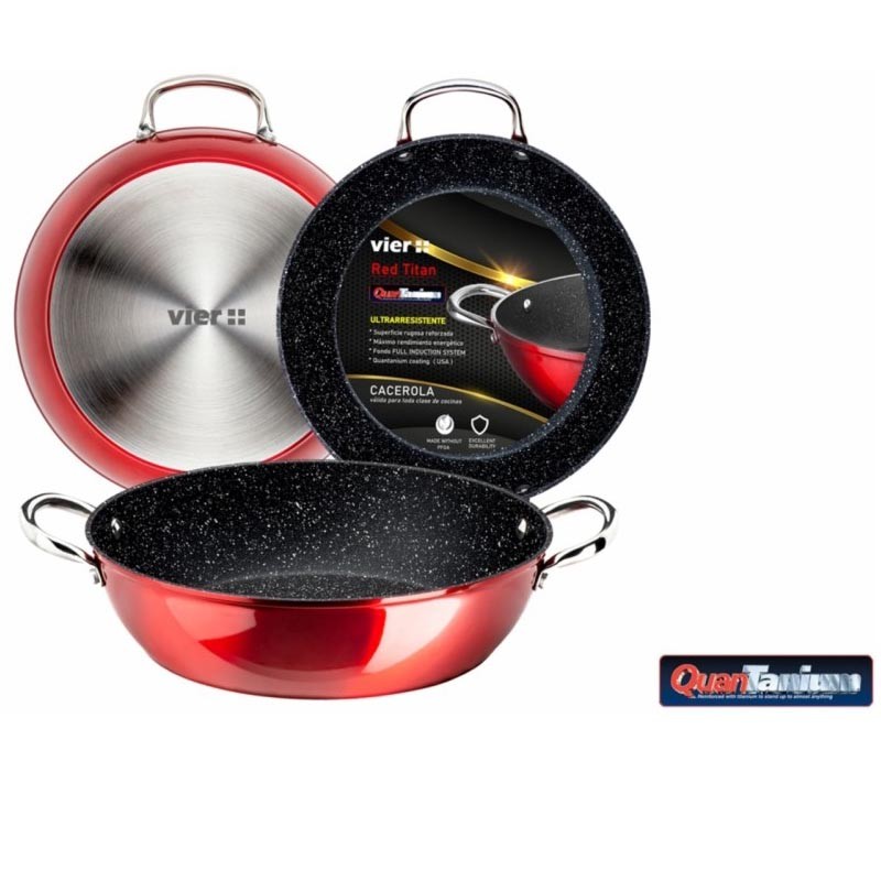 Caçarola de 32 cm de alumínio forjado com 2 alças de aço inoxidável da marca Vier. Ideal para guisados e arrozes, graças à sua distribuição homogênea do calor e capacidade adequada.