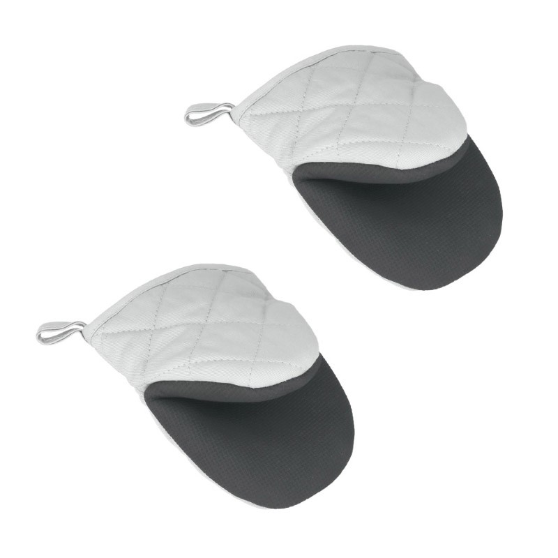 Este conjunto inclui 2 luvas de forno com uma camada de borracha sobre algodão que oferecem proteção tanto para canhotos quanto para destros durante o cozimento.