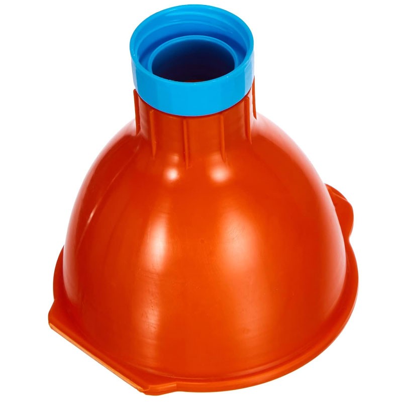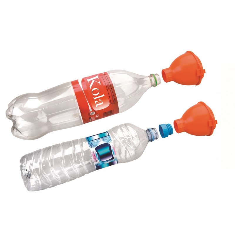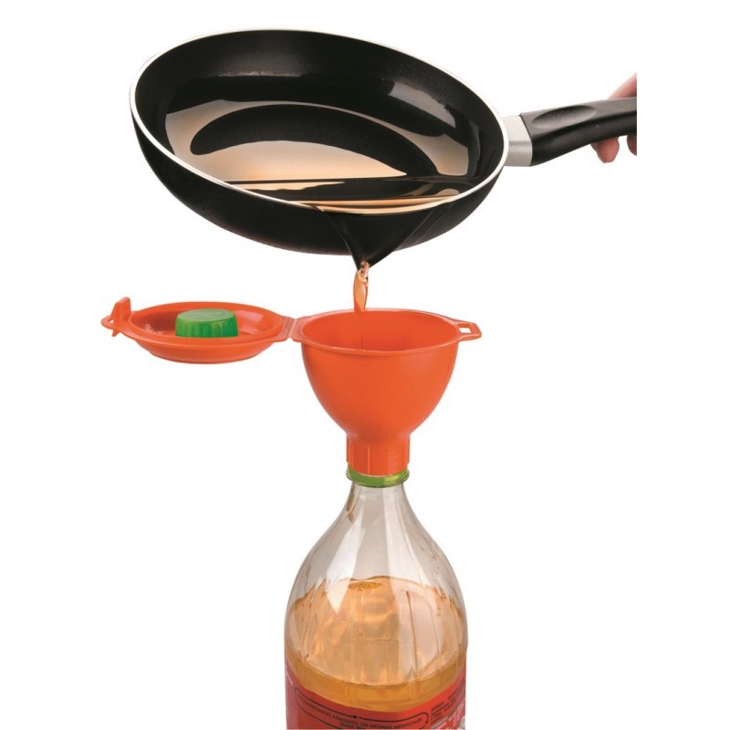 Funil para reciclagem de óleo doméstico, fabricado em plástico resistente e com rosca para adaptá-lo às garrafas.