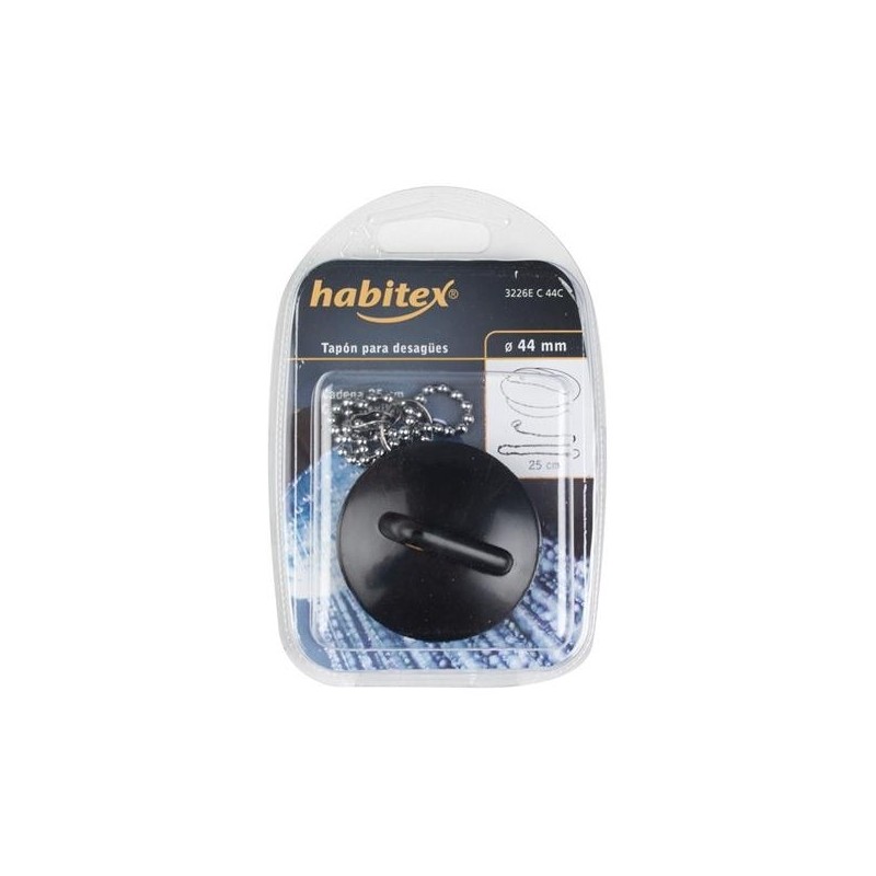 Tampão para pia de borracha de 44 mm com corrente de 25 cm e anéis.