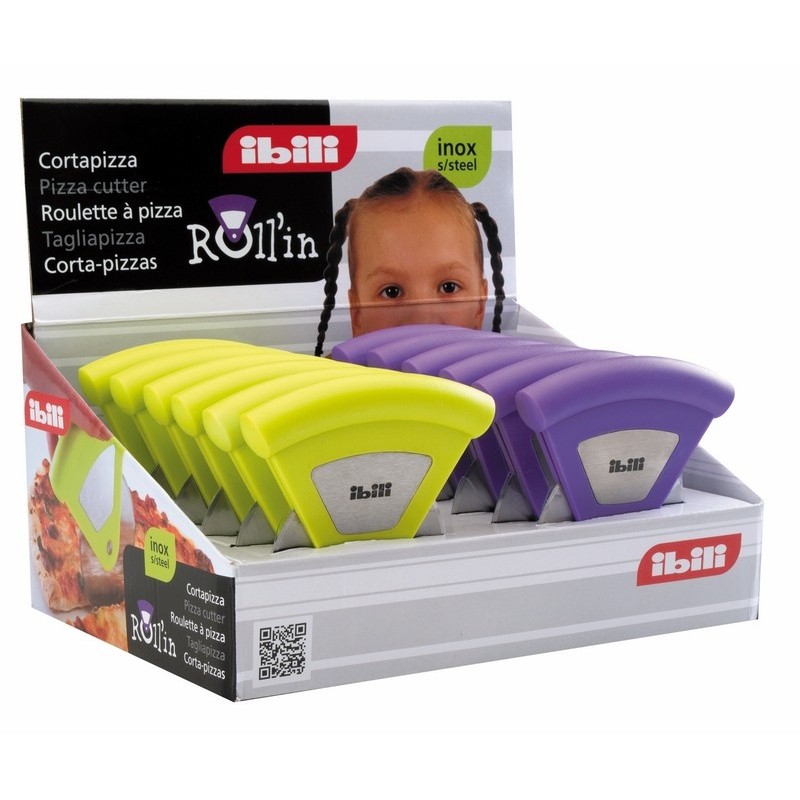 Cortador de pizza Roll In, fabricado em aço inoxidável e plástico resistente.