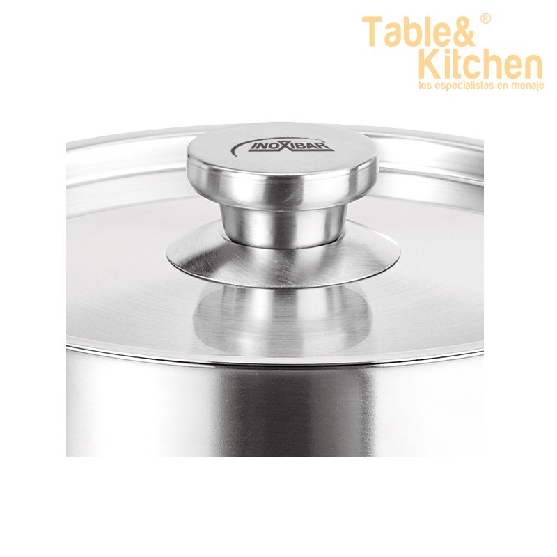 Caçarola alta Série Kook Me de Inoxibar, fabricada em aço inoxidável de alta qualidade com fundo difusor.