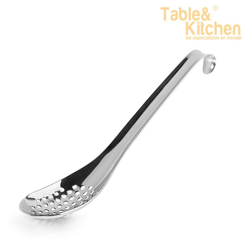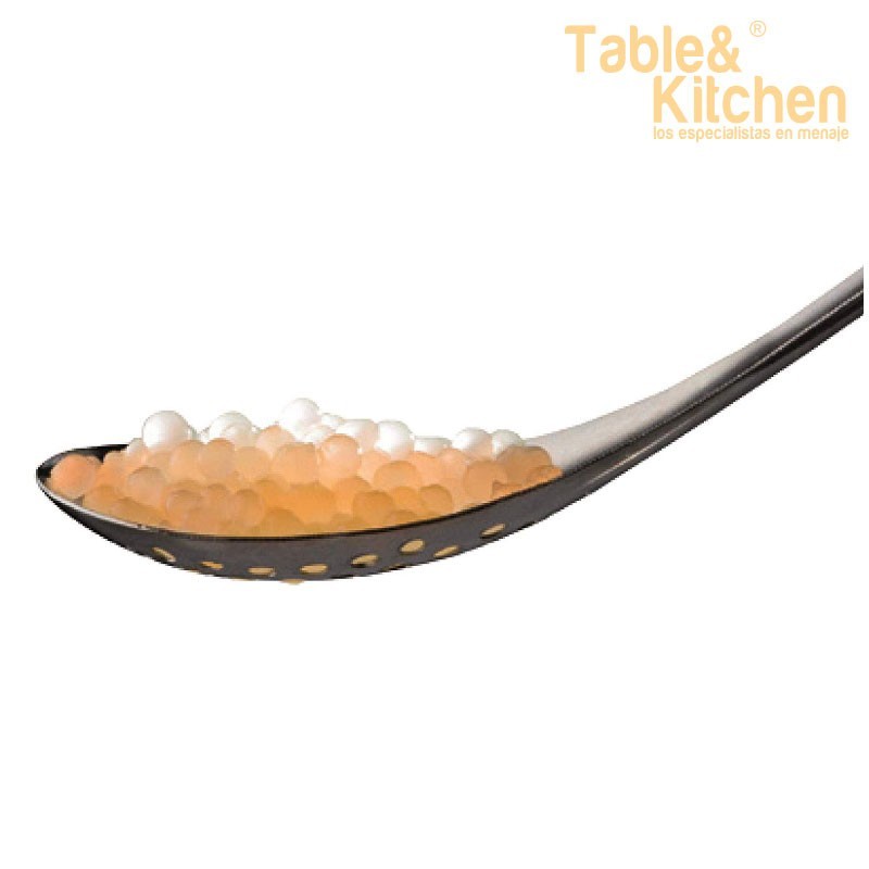Esta colher é ideal para colher as bolinhas de esferificação ou peças maiores.