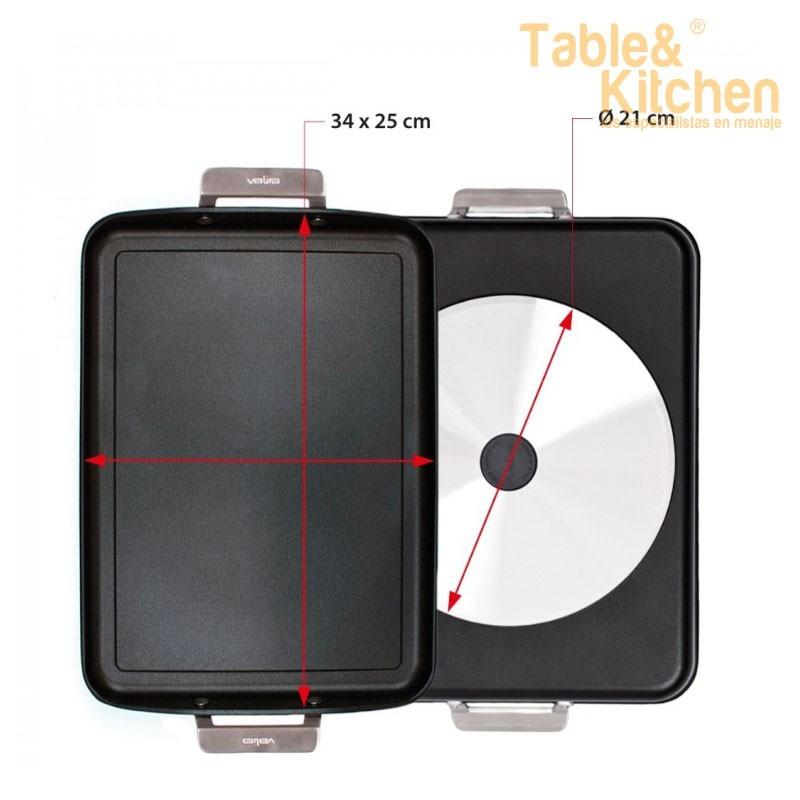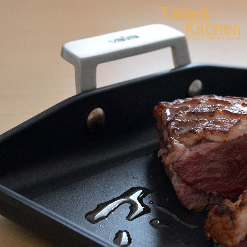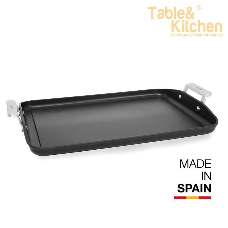 Esta plancha é adequada para cozinhas a gás ou vitrocerâmica e pode ser usada no forno até 260ºC. Além disso, conta com uma superfície inclinada que permite separar os líquidos e as gorduras dos alimentos.