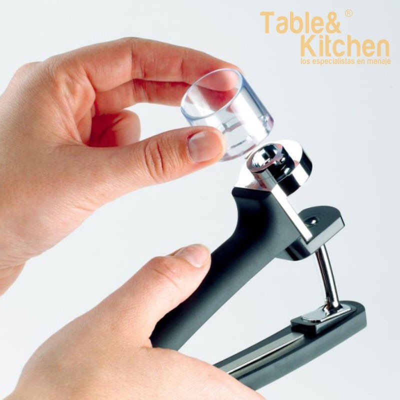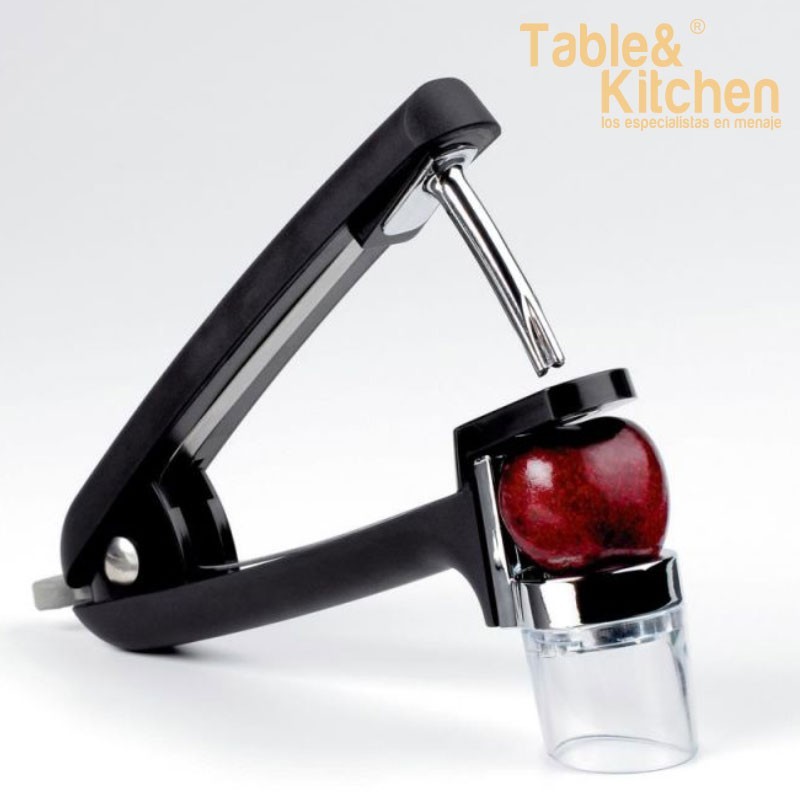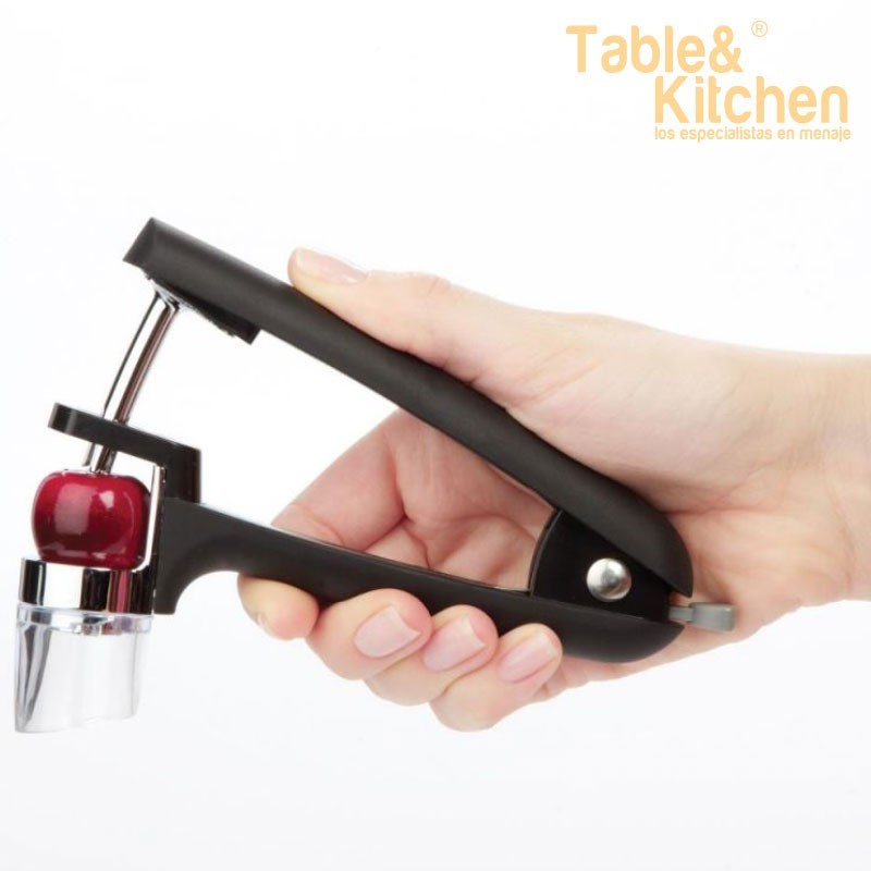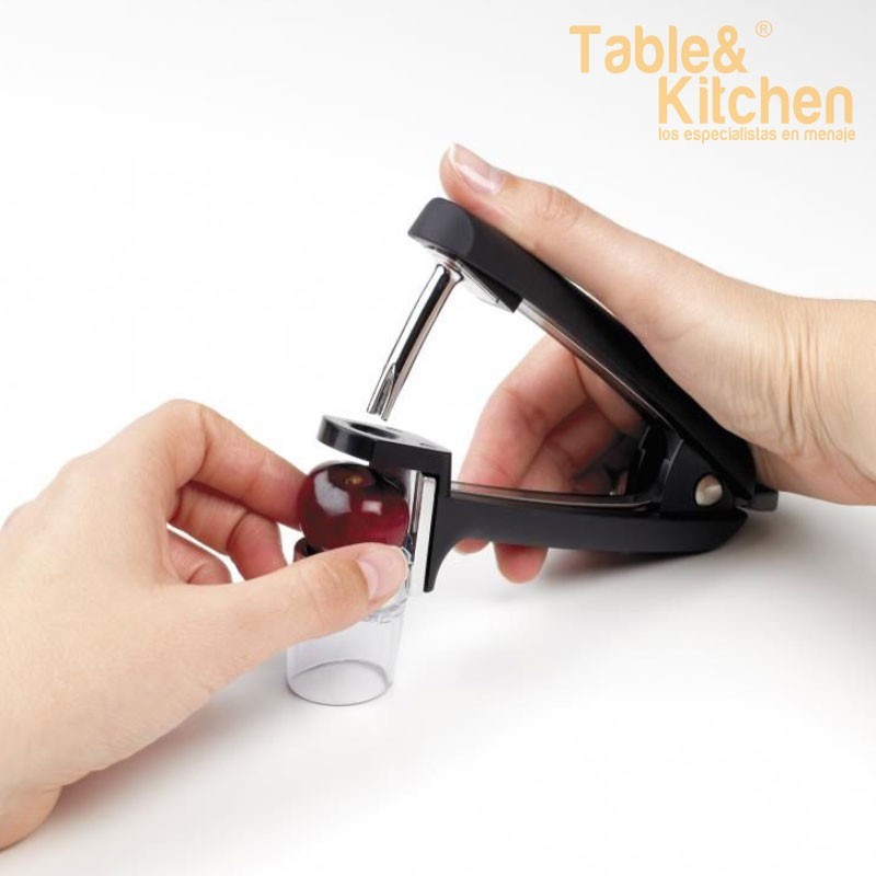 - Descaroçador prático para cerejas ou azeitonas com guarda-sujidade e cabo antiderrapante para absorver a pressão. O guarda-sujidade pode ser removido para limpeza.