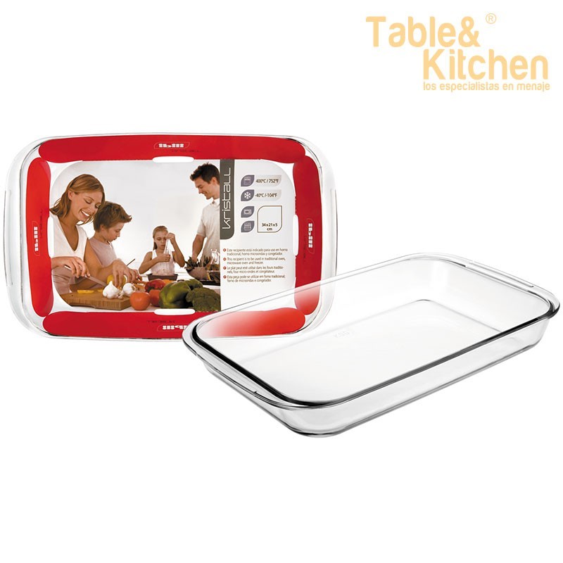 Fonte forno retangular Kristall da Ibili. Esta fonte é adequada para uso em fornos convencionais, fornos de micro-ondas e congeladores. Pode suportar temperaturas que variam entre -40ºC e +400ºC, o que a torna versátil para assar alimentos e congelá-los para posterior assar na mesma fonte.
