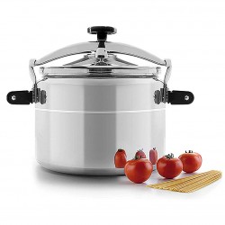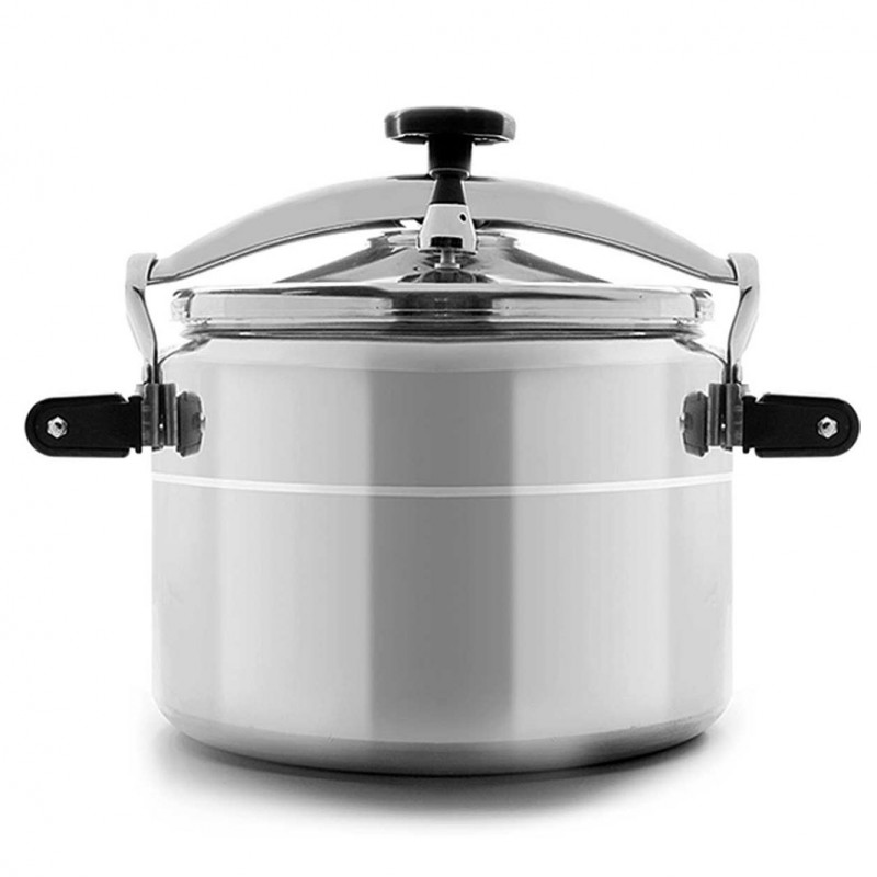 Panela de pressão com corpo de alumínio e tampa de aço inoxidável destinada a uso profissional de 33 litros Lacor.