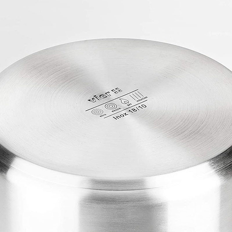 Panela de aço inoxidável 18/10 com fundo capsulado de 24 cm de diâmetro da marca Vier.